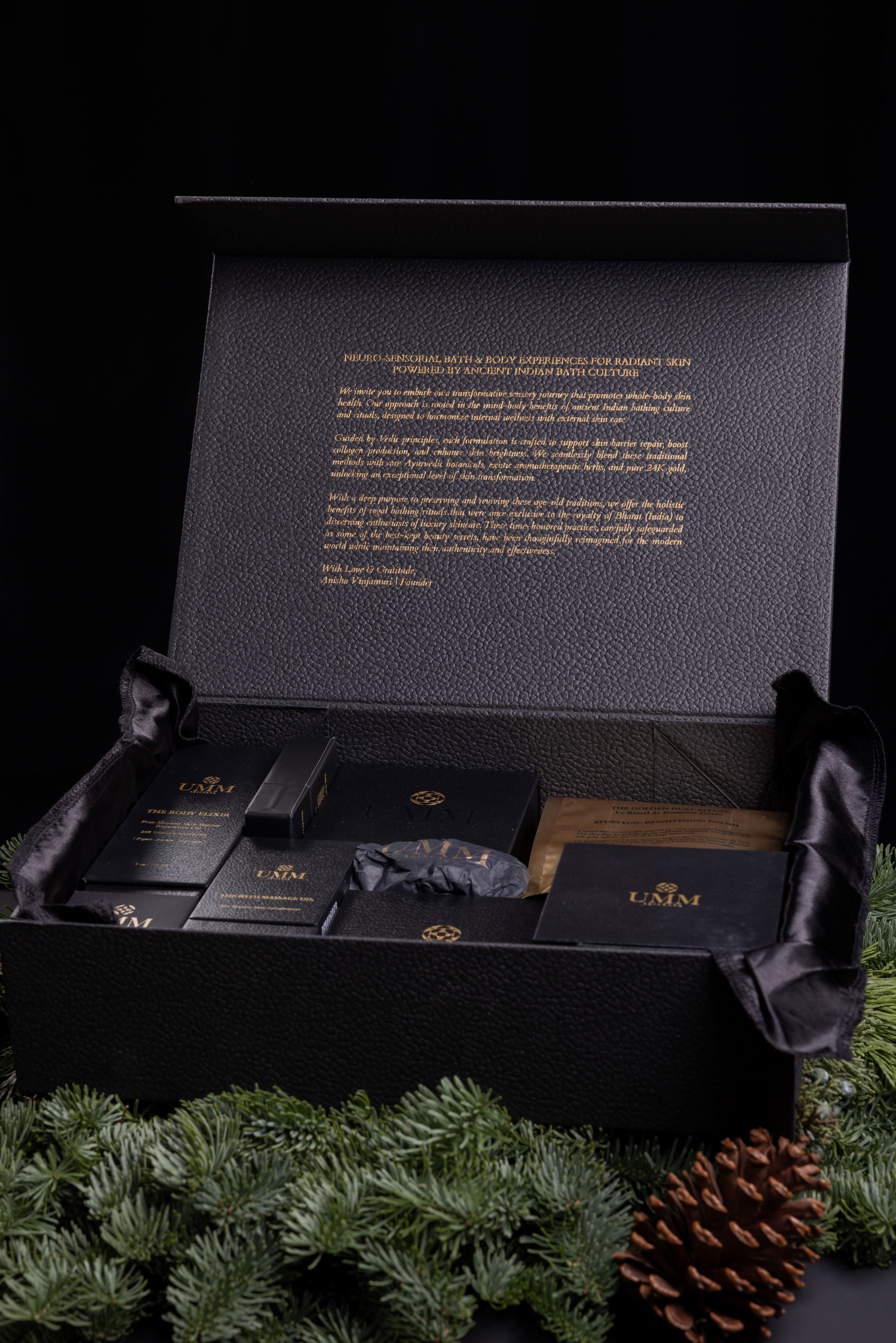 The UMM Holiday Ritual Vault is a sacred keepsake...an immersive treasury of rituals, textures, botanicals, and healing arts inspired by the ancient bathing traditions of Ayurveda.